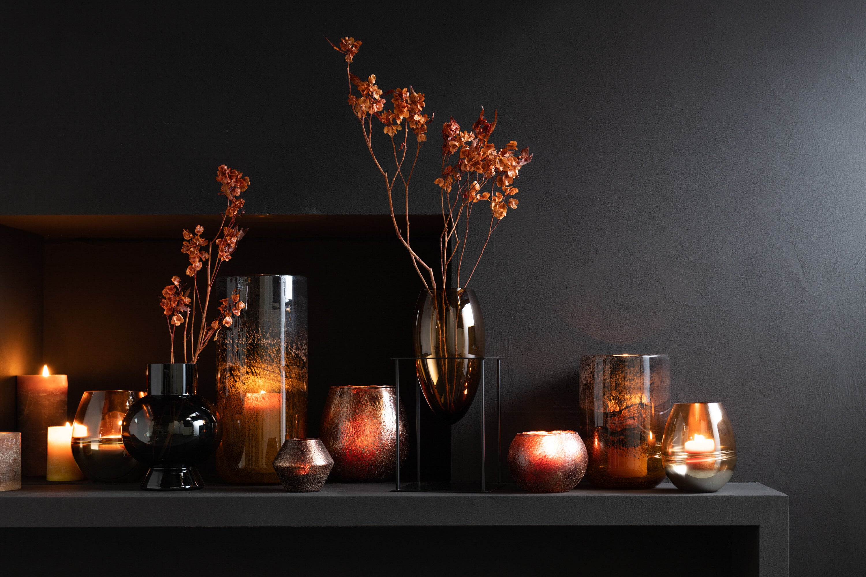 Zwart met wit kil? De stijlstudio Midnight Monochrome bewijst het tegendeel en laat zien dat een zwart-wit interieur weliswaar uit deze kleuren als basis bestaat maar dat het een moderne en warme touch krijgt door het te verzachten met bijvoorbeeld oranje en koperkleurige details. Combineer donker glas met houten details, voeg kaarsen toe in houten kandelaren, zet bloemen neer, hang kransen op en deze stijl zal je in al zijn eenvoud verwarmen.