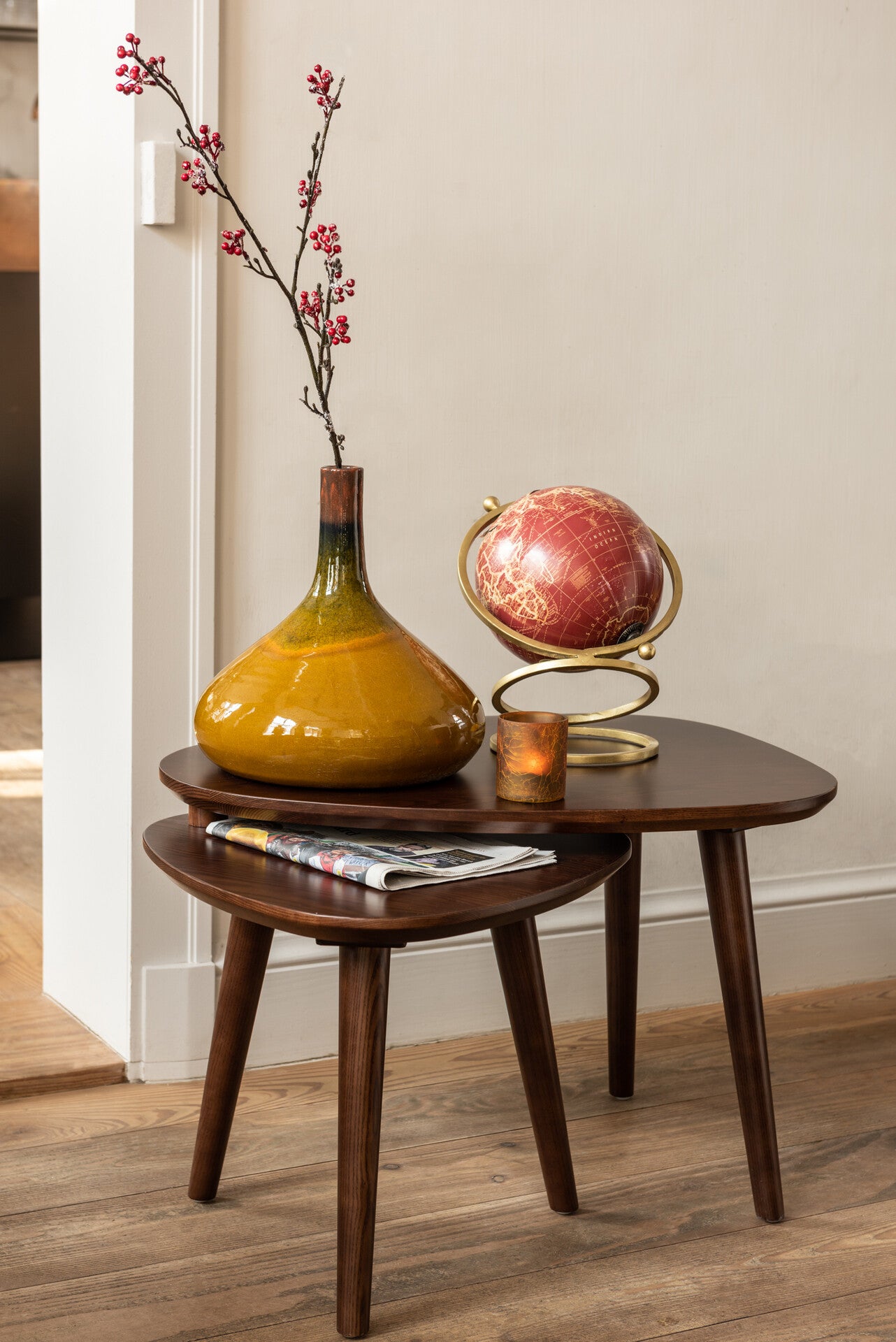 Misschien van ver voor jouw tijd maar in ieders collectief geheugen: de retro stijl uit de 70’s. Kenmerkend zijn de grafische prints en ronde vormen. Wie denkt dat de retro trend alleen uit bruin en oranje bestaat vergist zich: ook rode details en oker doen het goed in deze stijl. Combineer nieuwe items die doen denken aan de 70’s - als gekleurd glas en gedraaide kaarsen - met echte erfstukken uit die tijd en jouw Retro Revival is compleet!